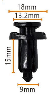 Mierząc o średnicy 18 mm, o długości 15 mm i grubości 9 mm, zacisk ten idealnie wyrównuje się z wymaganiami mocowania pojazdów Hondy i Nissana. Jego unikalny zaokrąglony góra ułatwia łatwą instalację i usuwanie, podczas gdy dno w kształcie stożka skutecznie zwiększa powierzchnię kontaktu z powierzchnią mocującą, zwiększając stabilność połączenia. Ponadto wyraźnie oznaczone wymiary „18 mm”, „3,2 mm” (które, jak zakładamy, są dodatkowym odniesieniem wymiarowym, być może dla określonej szerokości lub szczegółów, ale skupienie pozostaje na średnicy 18 mm), a „9 mm” na obrazie eliminują wszelkie obawy dotyczące niedopasowania wielkości.