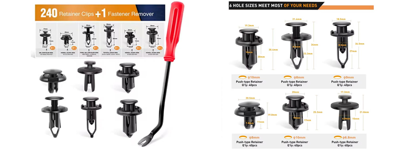 Zastosowanie: Na przykład łuki kół, plastikowe panele izolacyjne dźwięku pod maską, panele ochrony podwozia itp. Można naprawić przez paznokcie rdzeniowe napędu, zapewniając w ten sposób, że te części nie zostaną poluzowane z powodu wibracji lub kolizji podczas jazdy.